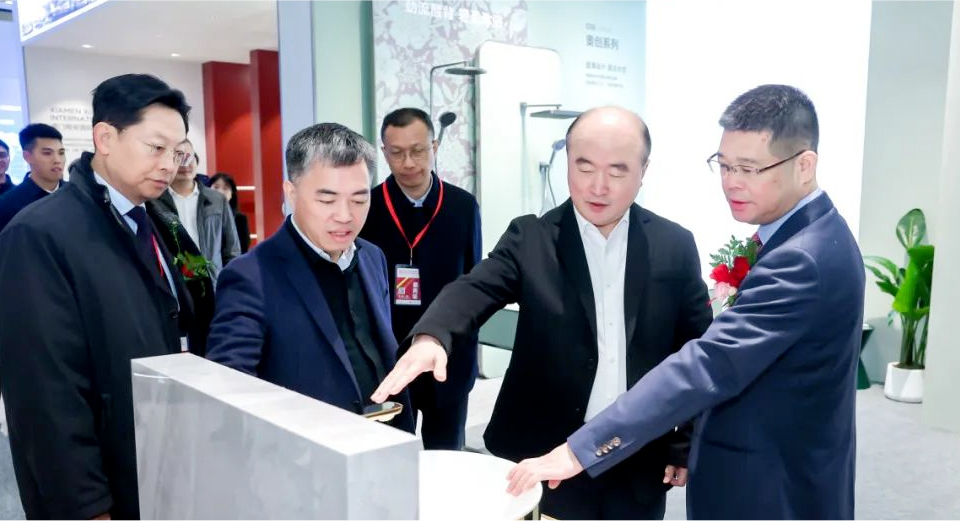 From January 26th to 28th, the 2nd World Technology Bathroom Investment Expo and Technology Bathroom Supply Chain Connection Conference were grandly held in Nan'an, Quanzhou. Jiumu Group, along with its four major brands, Jiumu, Jiumu Xiaomu, THG, and Poggenpohl Bodybao, made a stunning appearance, showcasing the outstanding strength and international image of "Technology Bathroom World Jiumu" in all aspects. On the day of the opening ceremony, leaders of the Quanzhou and Nan'an governments visited various exhibition halls in Jiumu accompanied by Lin Xiaofa, Secretary of the Party Committee and Chairman of Jiumu Group, and gave high praise to Jiumu.